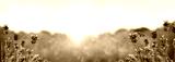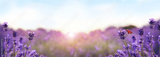 Beautiful sunlit lavender field, closeup. Banner design