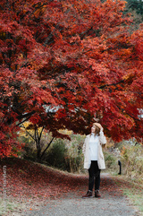 Young asian woman travel in Japan in Autumn season,Travel concept