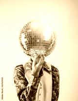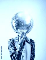 1970s Disco man in a leisure suit with a glittering disco mirror ball for a head