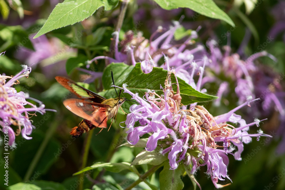 Hummingbird or Clearwing moth feeding on nectar