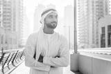 Beautiful middle eastern man wearing kandora traditional outfit in Dubai. Portraits in the emirates