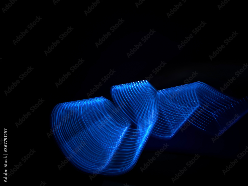 Beautiful graphic shapes made of light with a long exposure. Background pattern in shades of classic blue color of the year 2020.