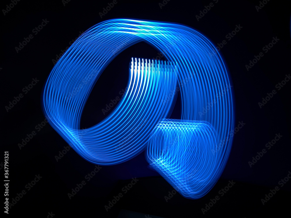 Beautiful graphic shapes made of light with a long exposure. Background pattern in shades of classic blue color of the year 2020.