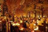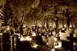 Gdansk, Poland - November 1 2011 : Cemetery in Nowy Port on All Saints' Day. Lights and flowers on family graves.