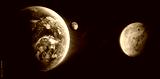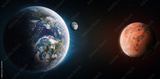 Earth planet and red planet Mars in deep space. Distance between planets. Elements of this image furnished by NASA