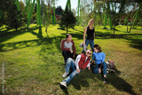 Group of people happiness together in amusement park at American roller coaster attraction background.