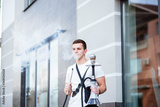 Young handsome guy smoking hookah alone closeup. Young guy smoking a hookah. Hookah and sparks from coals. Shisha, spark, hookah sparks. Young man smokes a fragrant oriental hookah.