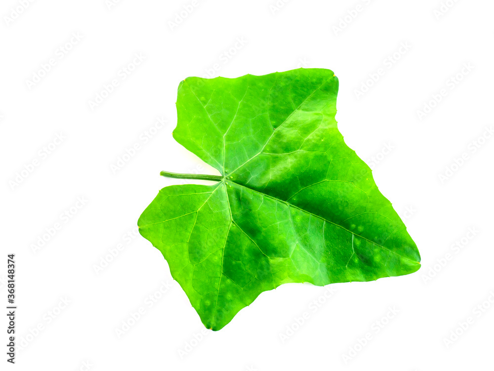Close up Green ivy gourd leaf on white background.