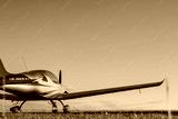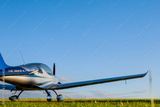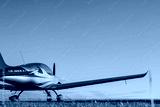 Blur Light small plane on the grass on a background of blue clouds