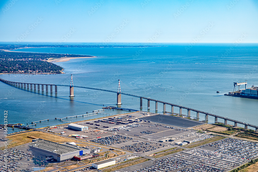 loire river and saint nazaire bridge from airplane view