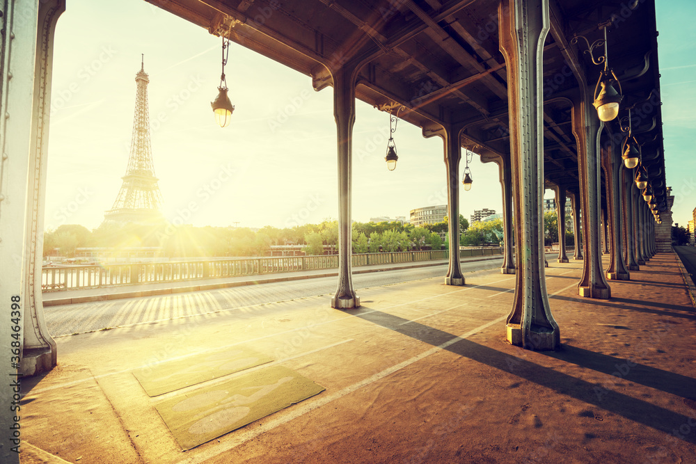 Eiffel Tower from Bir-Hakeim metal bridge in the morning, Paris, France