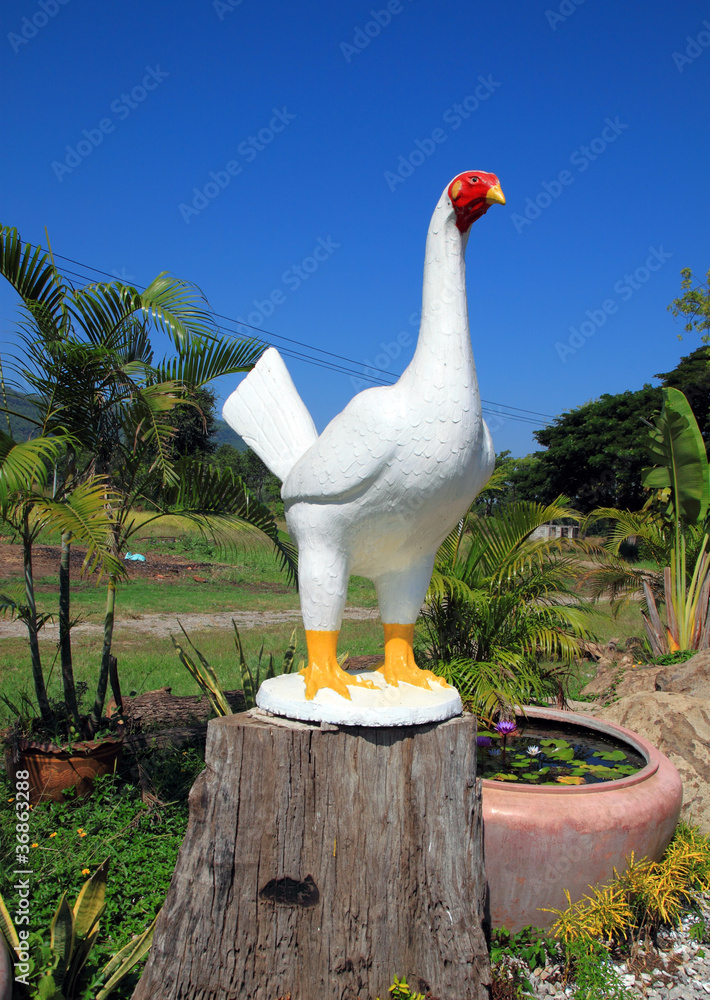 Large white stone chicken statue