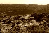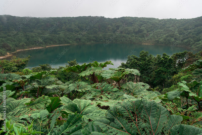 Extinct volcanic Crater Lake Botos surrounded by tropical jungle