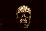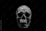 Human skull with texture of fish scales isolated on black background.