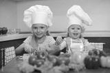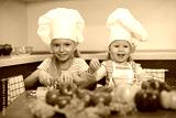 two little girls preparing healthy food on kitchen