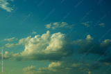 Large heavy clouds slowly float across the blue beautiful sky. Stunning landscape and view. Blue sky with cloud .