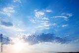 Large heavy clouds slowly float across the blue beautiful sky. Stunning landscape and view. Beautiful sky with cloud before sunset .