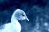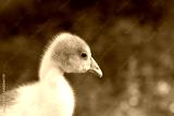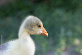 Young goose is walking in a backyard.