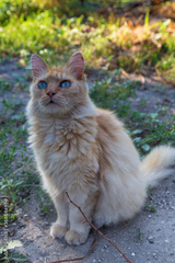 Red Cat lying on the street and enjoy the sun.