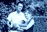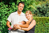 Happy parents with newborn baby outdoors
