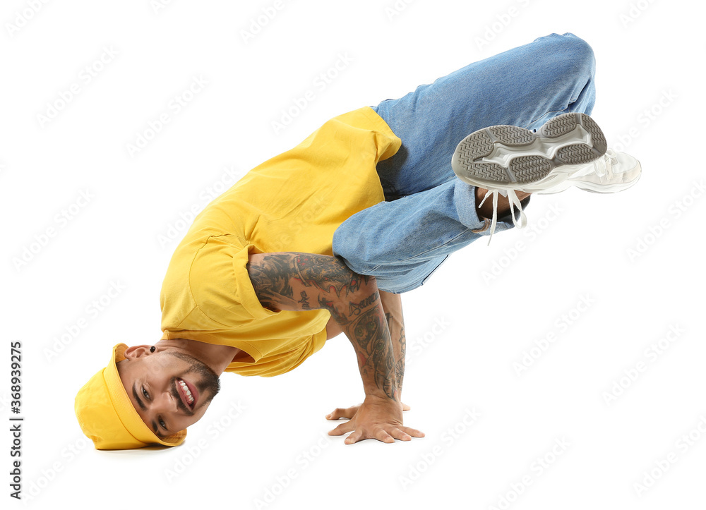 Male hip-hop dancer on white background