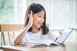 little girl using tablet for Homeschool and video call for e learning Quarantine coranavirus pandemic New normal concept