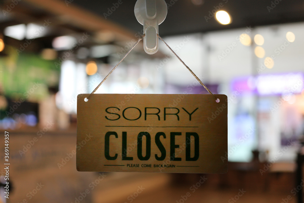 Shop closed of storefront sign.