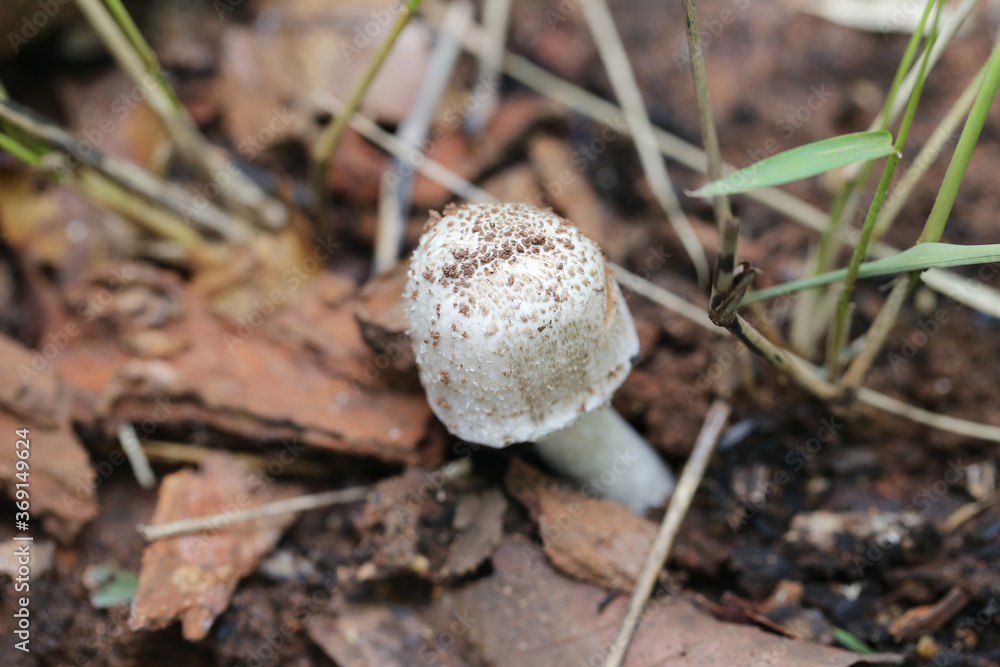 Tropical poisonous mushrooms blossoming in the forest.