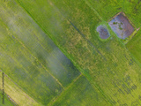 Aerial photograph, Green rice fields in rural areas, Thailand