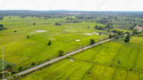 Aerial photograph, Green rice fields in rural areas, Thailand