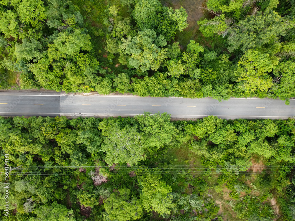 Aerial photograph, Green forest with road