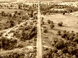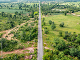 Aerial view road going through forest, Road through the green forest, Texture of forest view from above, Ecosystem and healthy environment concepts and background.