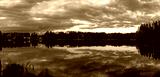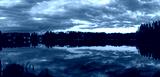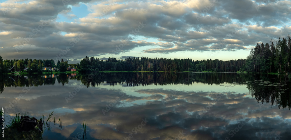 Forest lake with cloud reflection, in the Leningrad region on the Karelian isthmus.