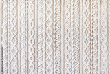 Close-up of hand made macrame texture pattern. ECO friendly modern knitting DIY natural decoration concept in the interior. Flat lay. Handmade macrame 100% cotton. Female hobby.