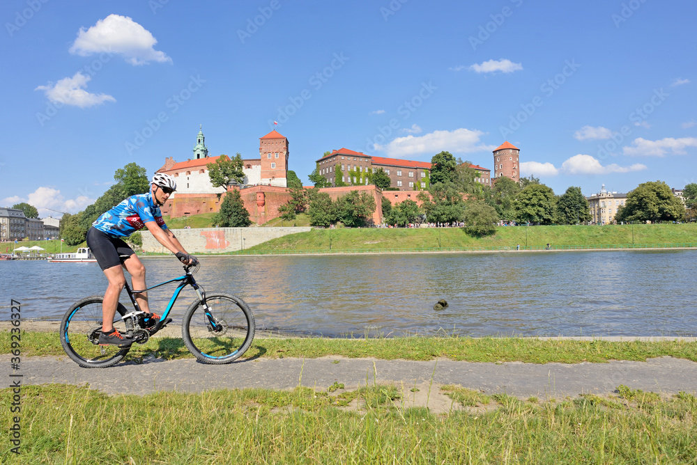 A man on a mountain bike- Cracow- Poland.