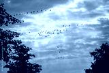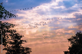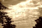 flying birds on sunset