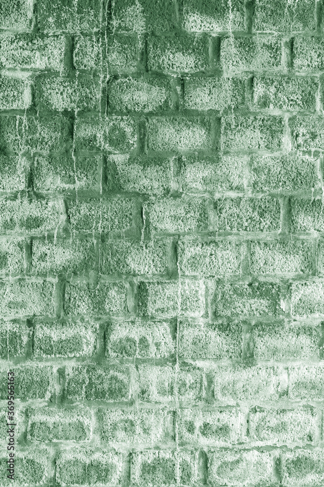 The background of the old green brick wall for design interior and various scenes or as a background for video interviews.