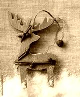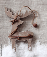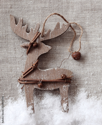 Wooden christmas deer on fabric background