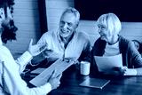 Happy aged couple consulting with insurance agent at home