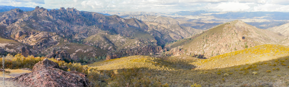 Expansive views via North Chalone Peak at Pinnacles National Park, Central California, USA.