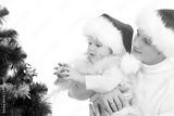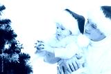 Father helps daughter decorate Christmas tree