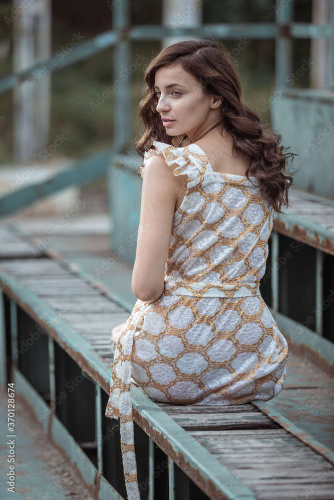 Fashionably dressed woman on the streets of a small Italian town
