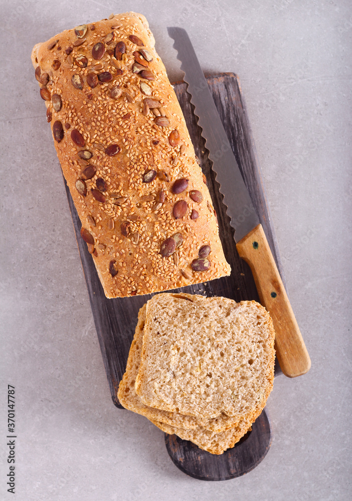 Whole meal seeds bread loaf, sliced