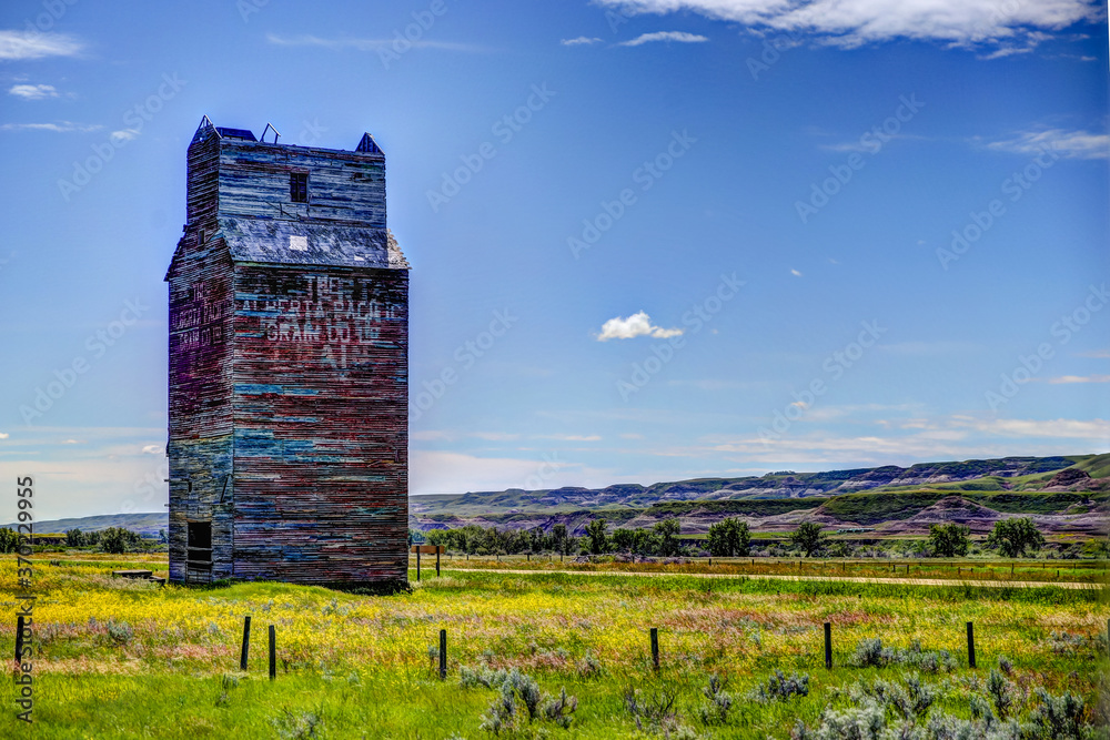 Abandoned grain elevator alongside the highway in Dorothy Alberta