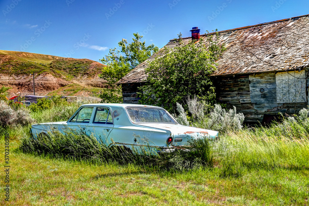 Abandoned vehicles and farm equipment in Dorothy Alberta