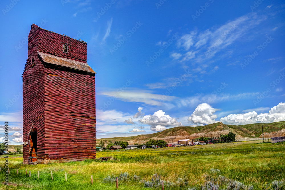 Abandoned grain elevator alongside the highway in Dorothy Alberta