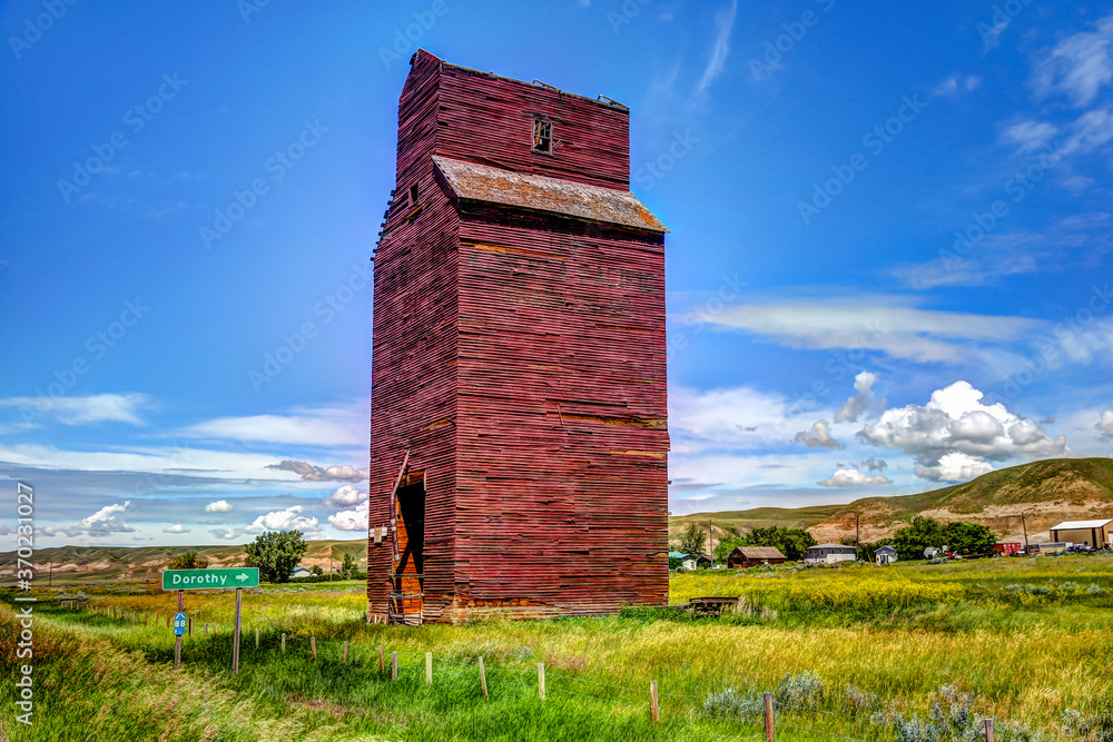 Abandoned grain elevator alongside the highway in Dorothy Alberta