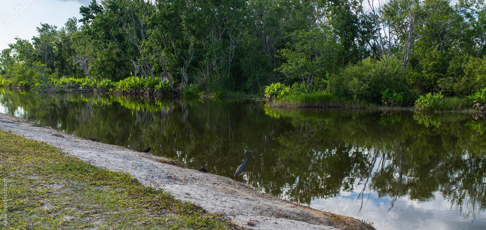 Swampy waters of South Florida. Lake Trafford side river with alligators, birds, fish, and other wildlife.