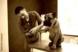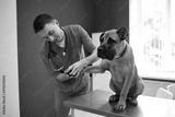 confident vet doctor checking nails of dog, maintain animal health, in vet clinic