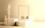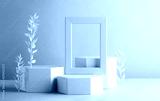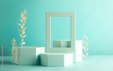 Composition of different geometric objects on pastel mint backdrop. Abstract background with hexagon shape podiums